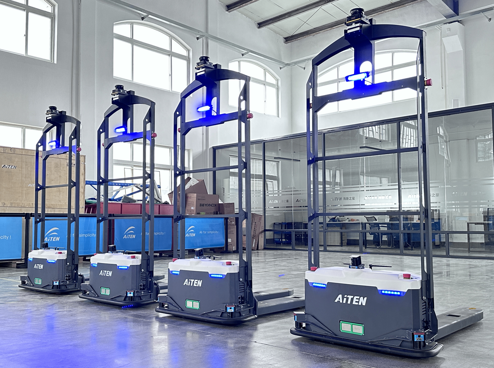 AGV:基于程序化指令运行,缺乏环境感知和自主决策能力,属于“自动化”设备
